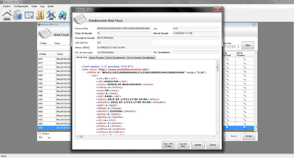 O sistema possui a leitura em um diretório de entrada, onde será copiado o arquivo XML da Nota Fiscal para validação e transmissão à receita federal, esse arquivo XML precisa seguir o padrão de schema fornecido pela receita federal. Ao identificar um novo arquivo nesse diretório, o emissor irá validar esse arquivo, assinar via certificado digital instalado no computador e em seguida fará a transmissão, ao final do processo será salvo o arquivo enviado em um diretório de saída, bem como será salvo um arquivo pdf da DANFE da nota fiscal transmitida e impressa.