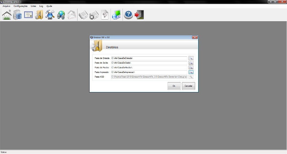 Para o funcionamento do sistema, será necessário disponibilizar alguns diretórios de rede, para que o sistema possa receber os arquivos XML, e após a transmissão manter salvos em outro diretório de rede.
